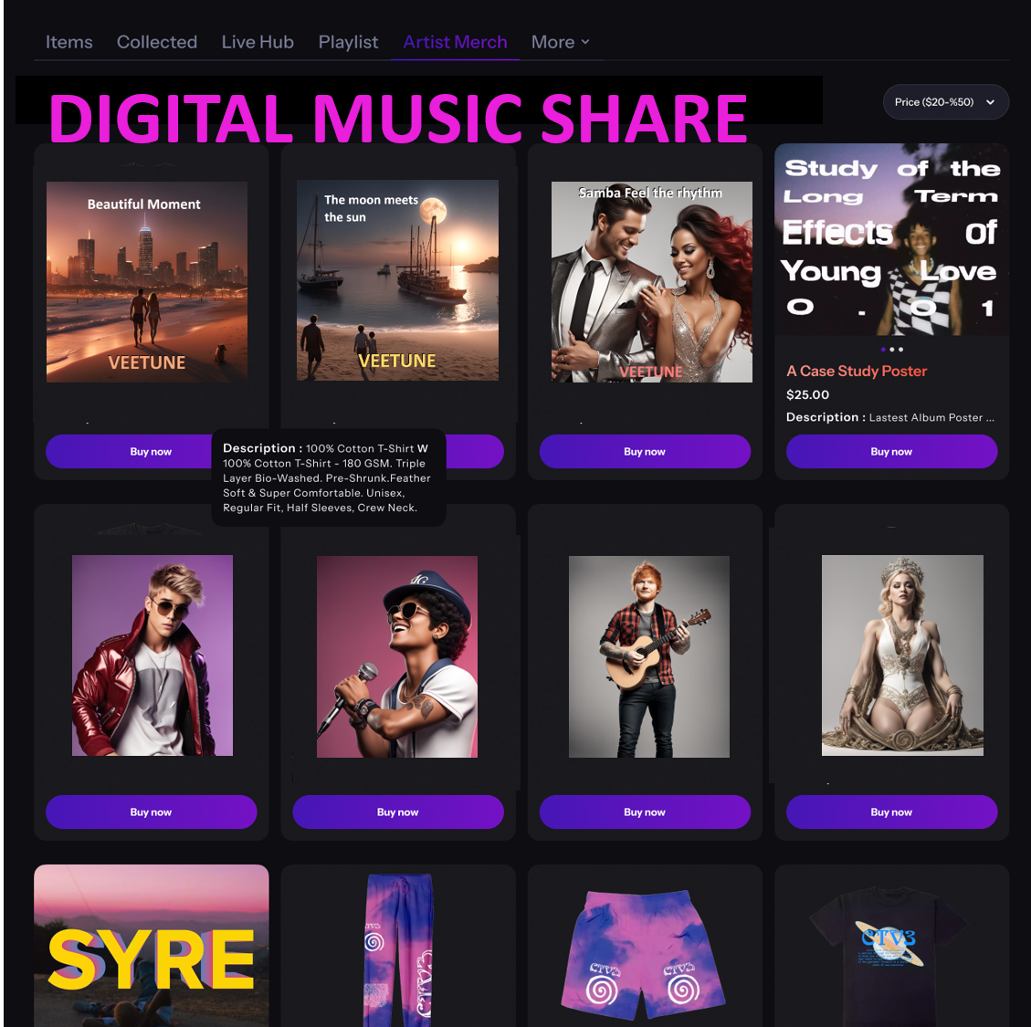 Through Digital Music Shares, you can own a share of your favorite songs and support the artists directly. Every share you hold earns you a portion of the song’s success.